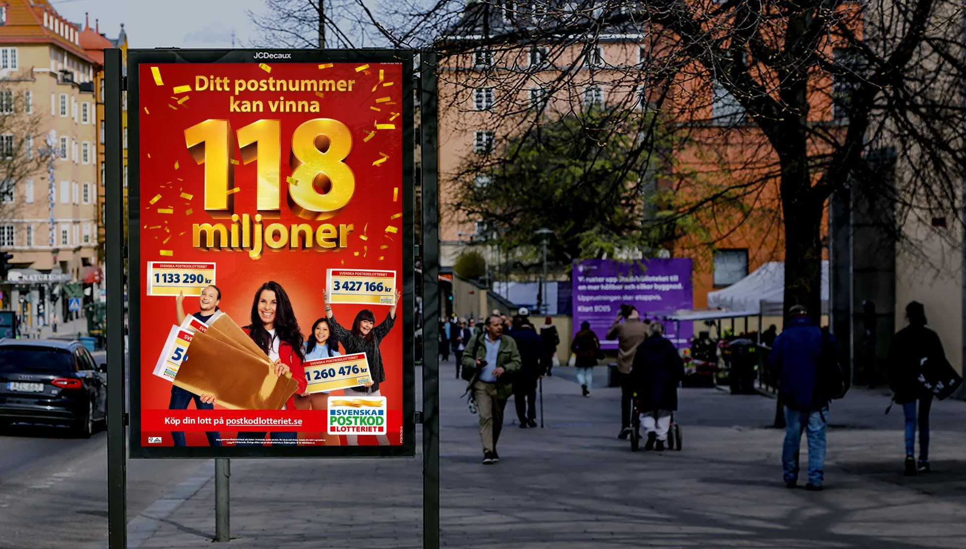 Grannyra is the biggest lottery prize at Postkodlotteriet. The campaign and prize occurs three times a year and for the latest campaign in September I was the primary graphic designer. The campaign has its set of rules and design but I could help push the details of the graphics to make the golden numbers shine and stand out just a bit more. I have selected a few of the various media produced during the period.