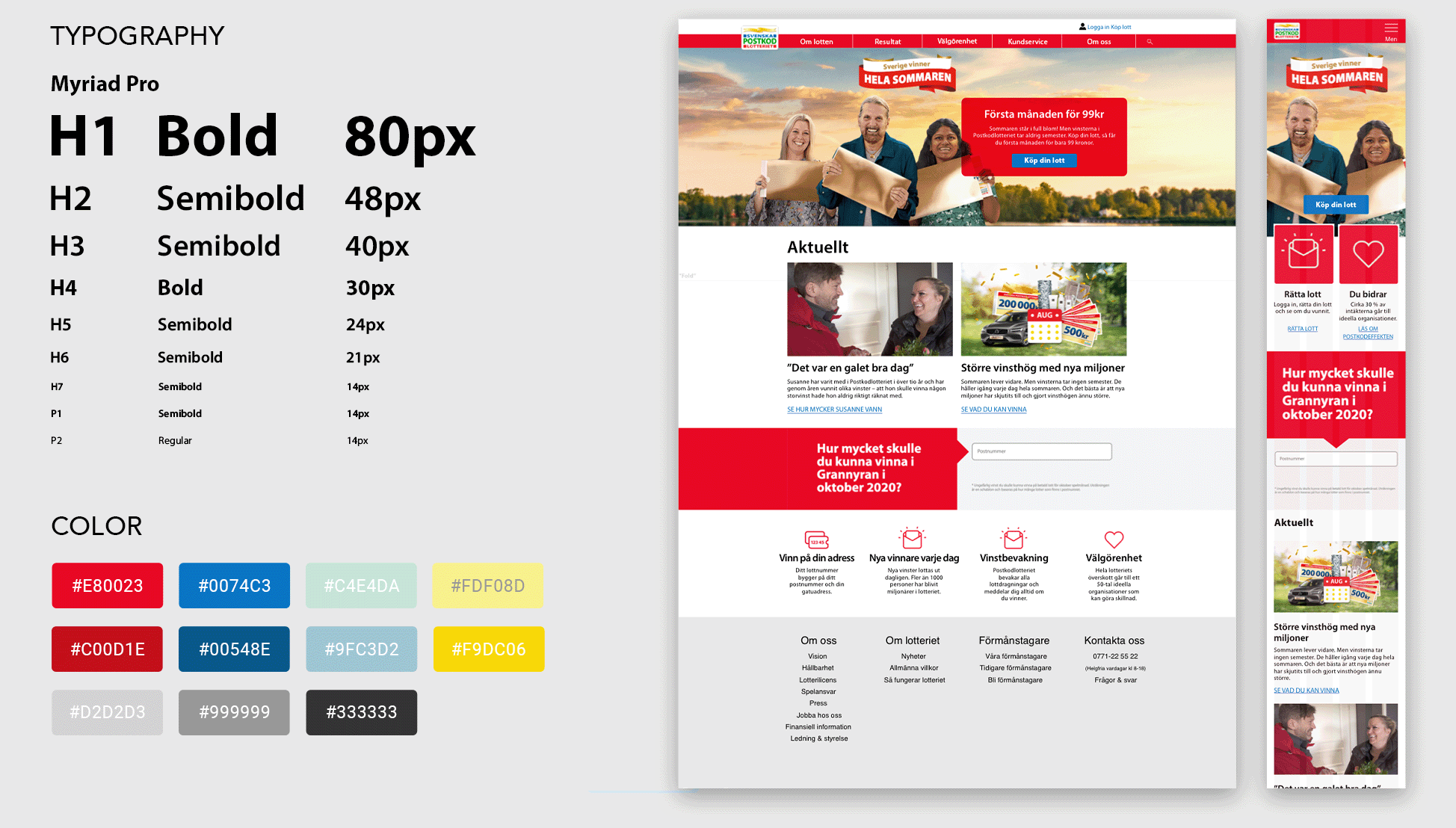 In collaboration with the UX designer we created a design system for Postkodlotteriet. We presented the project for several stakeholders and departments. The main goal was to create a more cohesive design and communication on the website. The project is still in the works.
